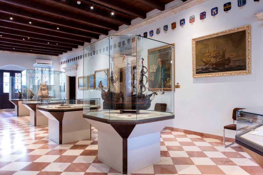 Muzej takođe čuva vrijedne arheološke nalaze, uključujući ilirske amfore i reljefe istorijskih događaja, dok rekonstruisani enterijeri plemićkih porodica dočaravaju svakodnevni život u prošlim vijekovima. Ovi prostori obogaćeni su originalnim namještajem, umjetničkim predmetima i dekorativnim detaljima koji svjedoče o kulturnim uticajima i bogatstvu pomorskih porodica.